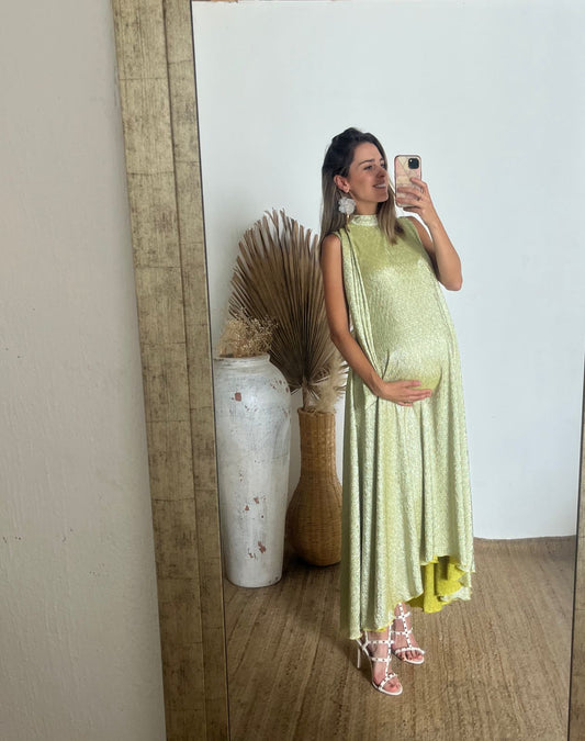 Vestido de maternidad Sonia, verde claro brilloso corrugado